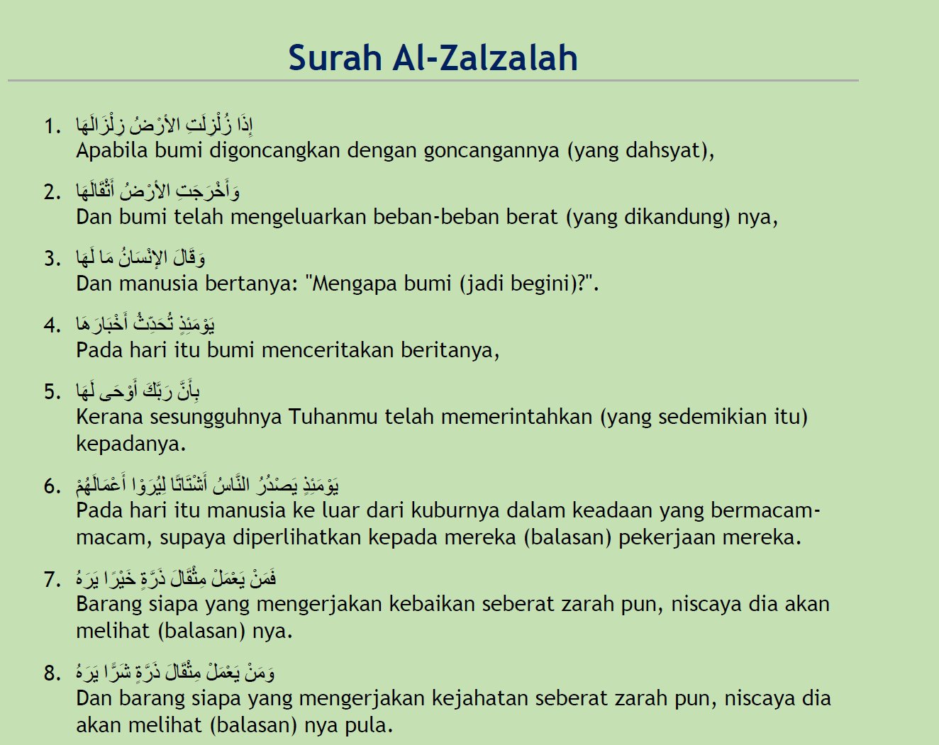 Surah Al Zalzalah Maksud